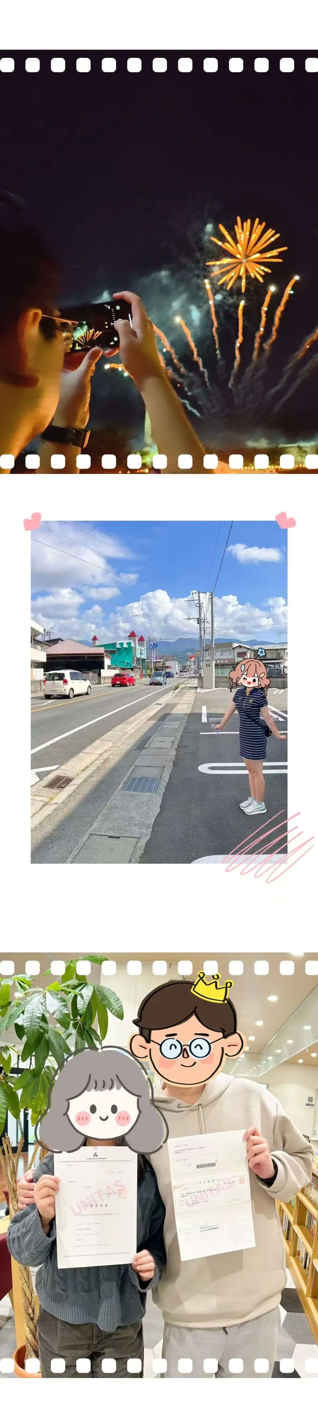 然而,随着工作节奏越来越快,加班几乎成了日常,两人都开始感到身心俱疲,他们萌生了一个共同的想法:趁年轻去留学,换一种生活方式。于是,他们开始计划、存钱、了解学校信息,整整准备了近三年。2022年他们经过反复比较后发现,山梨县物价适中,生活节奏舒缓,还有富士山的美景,于是选择了教学水平高、国际氛围浓厚的优尼塔斯甲府校。2023年4月,他们手牵手踏上了日本的土地。