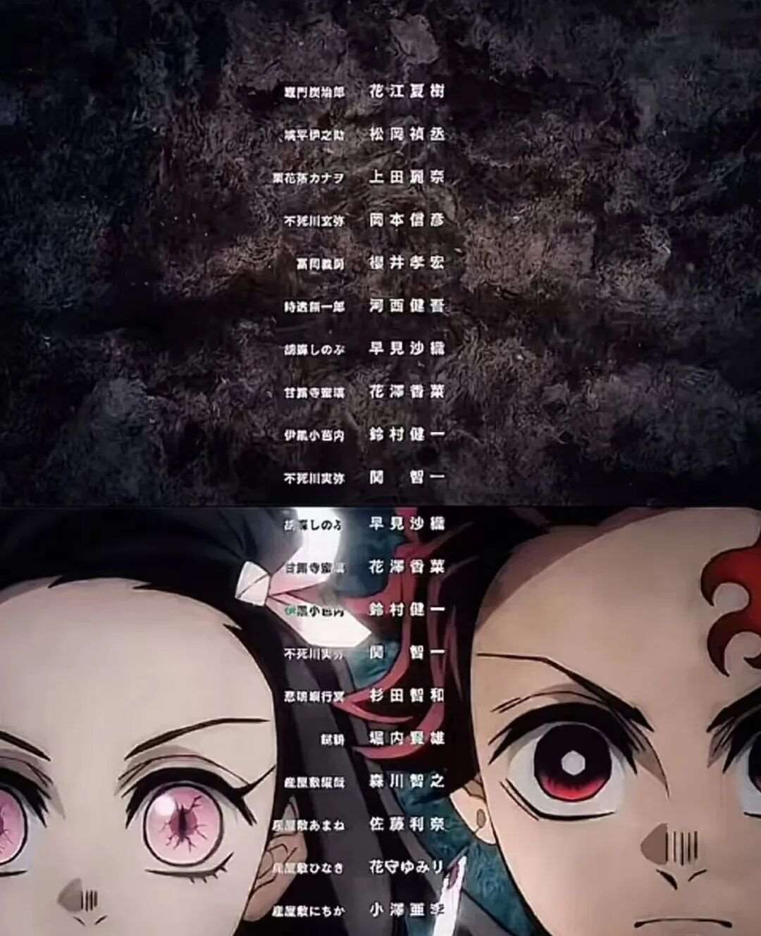 豪华的声优阵容:为炭治郎献声的花江夏树、为祢豆子配音的鬼头明里、为我妻善逸配音的下野纮、为嘴平伊之助配音的松冈祯丞等主角群悉数回归。鬼杀队的“柱”们及上弦之鬼的声优们也继续为观众带来精湛的声音表演。