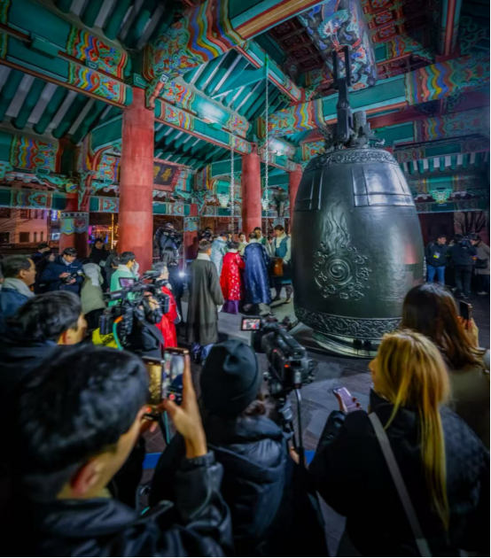 普信阁敲钟仪式:33声钟鸣辞旧迎新